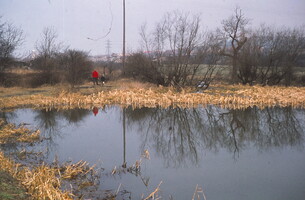 Originally created by flooding the low-lying fields adjacent to the Dearne, this is where the water for the paper making process was stored. What remains of the four separate smaller ponds now form part of the wet woodland area - a valuable wildlife habitat. The remians of what was probably a boathouse still exists in the south east corner of the dam. It is now a popular fishing lake.